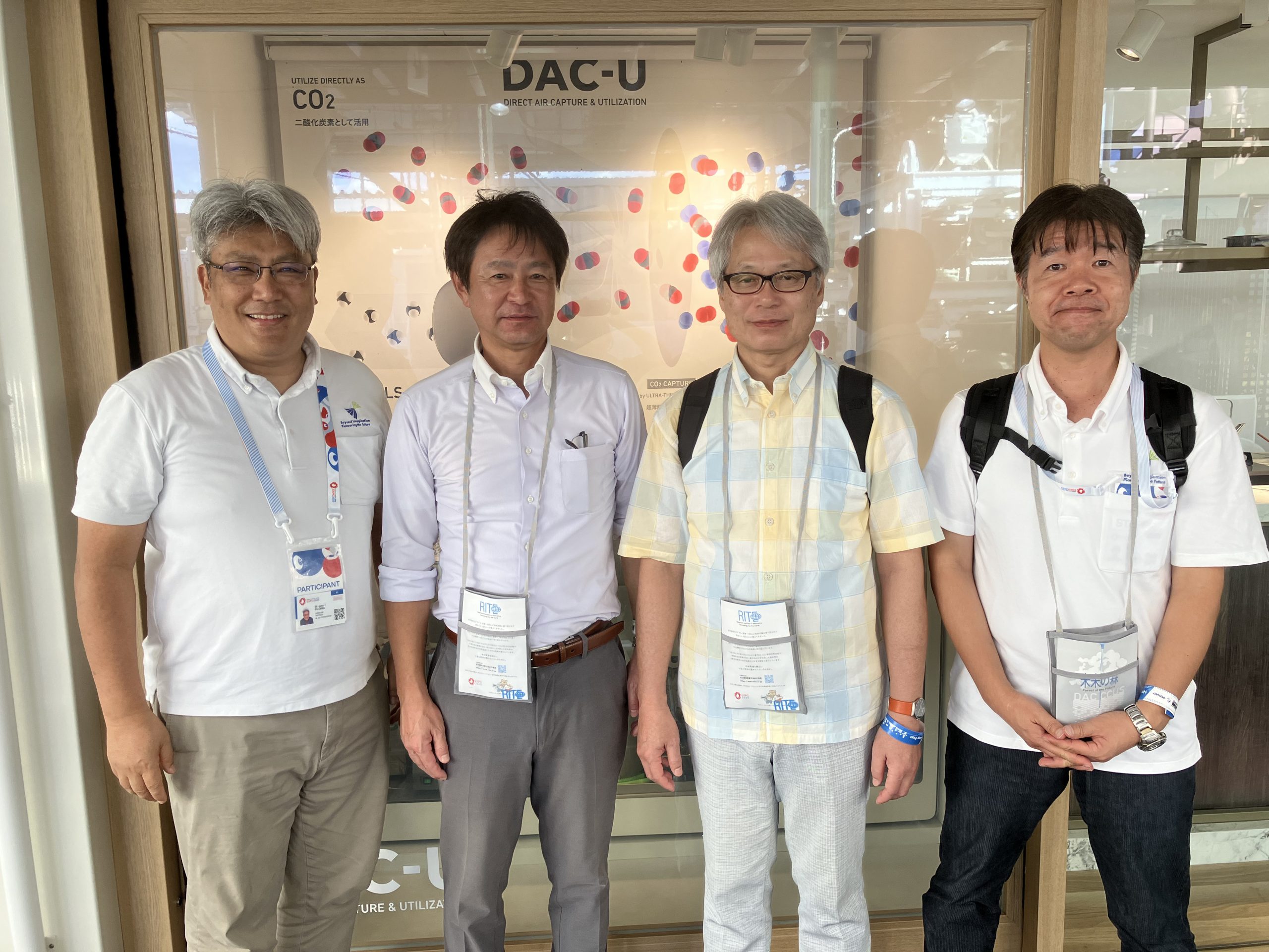 これらの実績を踏まえ、令和2年8月、大気中からの直接的CO₂回収とその資源転換技術の開発を行うため、本学が代表提案機関を務める「“ビヨンド・ゼロ”社会実現に向けたCO₂循環システムの研究開発」の提案研究がムーンショット型研究開発事業として採択されました。この事業では、独自開発の革新的な分離ナノ膜を出発点とし、極めて高いCO₂選択・透過性を有する分離膜型のCO₂回収ユニットを開発します。これと同時に、回収したCO₂を高効率で炭素燃料に変換するユニットも開発します。この二つのユニットを連結し、大気からのCO₂回収から炭素燃料変換までを一貫して行う「Direct Air Capture and Utilization (DAC-U)システム」の創製を目指します。このシステムは、相互連結による高い拡張性を持ち、小規模から大規模まで、条件に合わせて対応可能なものにします。これにより、地上に遍く存在する大気から、多様な場所でのCO₂回収・変換を実現する、我が国独自の革新的なDAC-Uシステムを創出し、気候変動問題の解決と新しい未来社会構築に貢献したいと考えております。